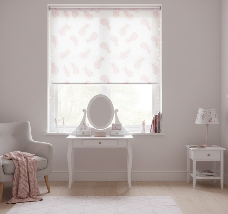 Różowa roleta w różowy wzór piórek
