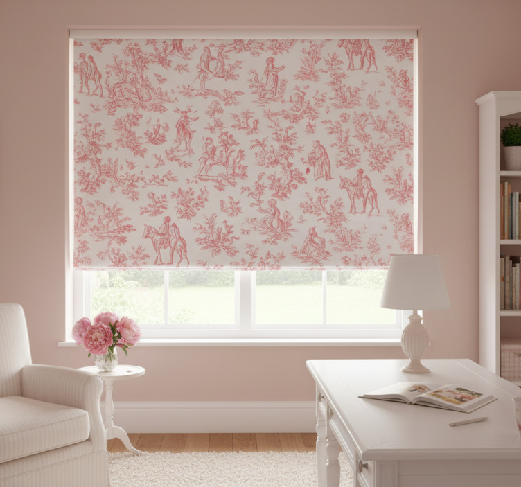Różowa roleta w stylu vintage z wiejskim motywem