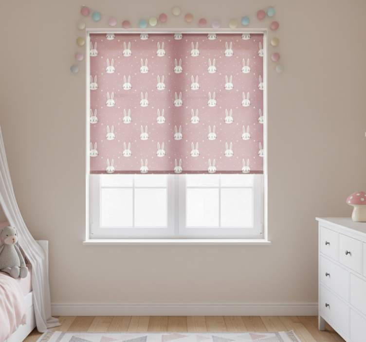 Różowa roleta z motywem króliczków dla dzieci