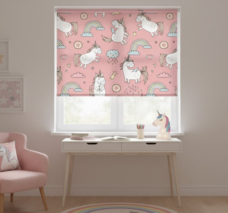 Różowa roleta z zachwycającym jednorożcem