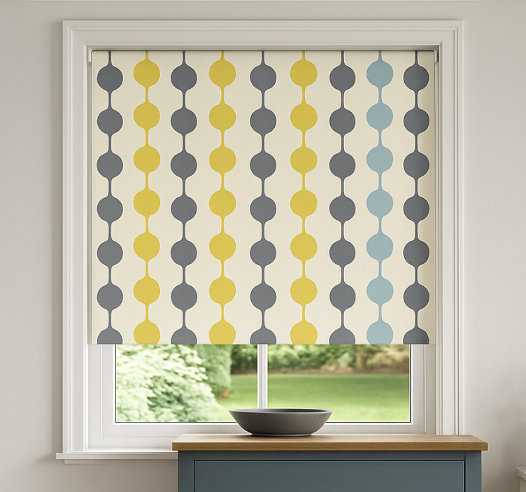 Skandynawska roleta z kolorowymi wiszącymi kółkami
