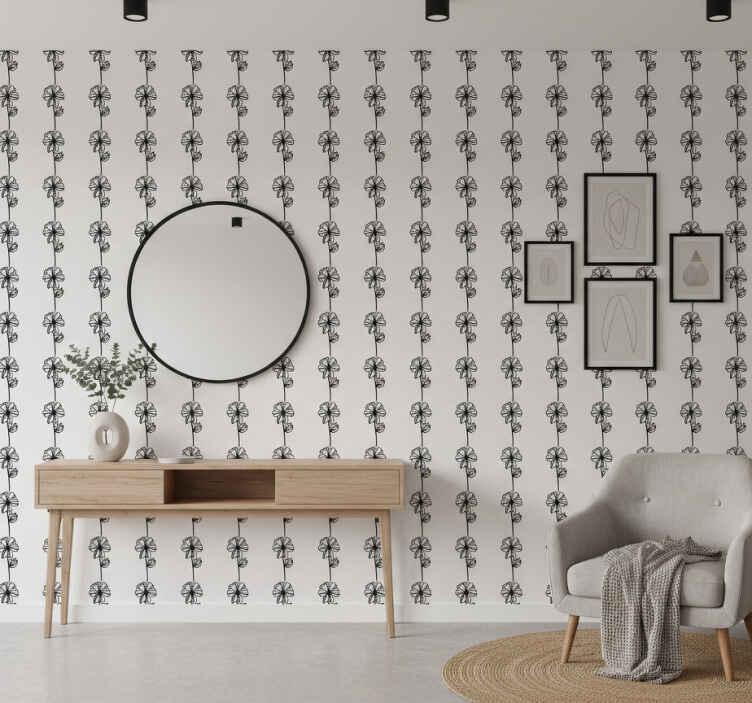 Tapeta do korytarza czarne pionowe kwiaty