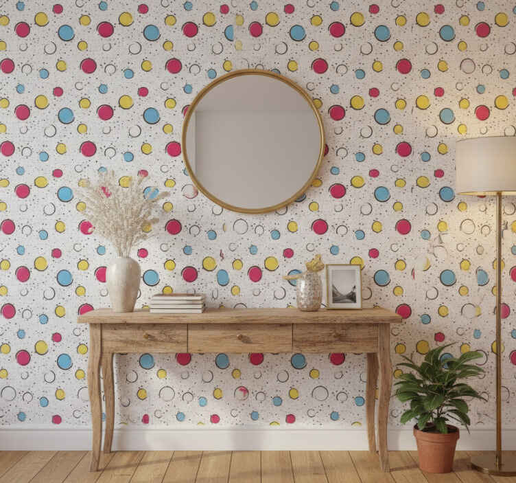 Tapeta do korytarza w wielokolorowe kropki