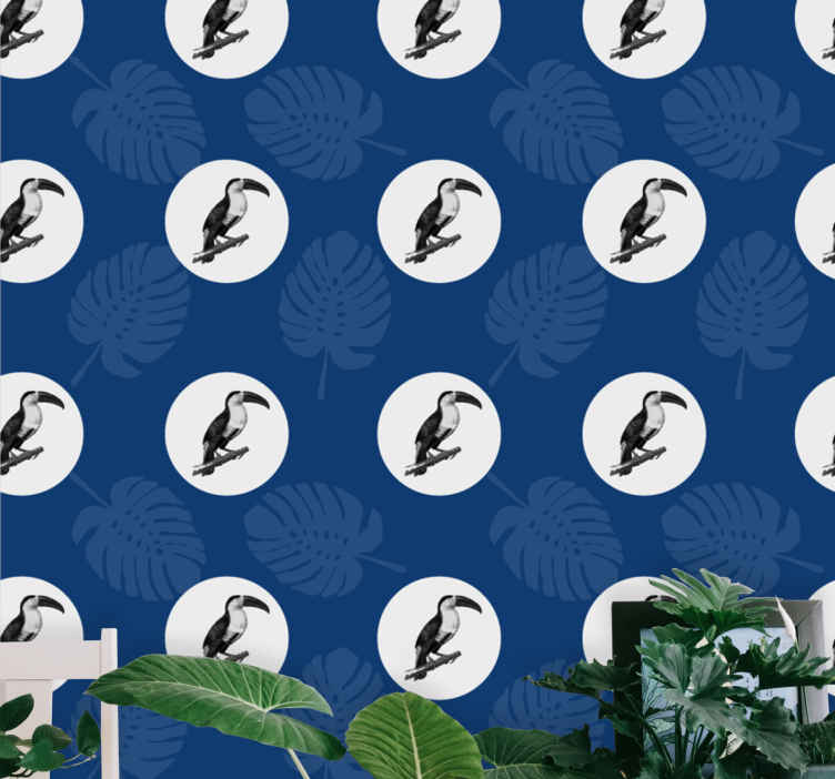 Numer referencyjny: P10341Tukan i tropikalne liście są przedstawione w fascynującym wzorze, tworząc żywy i inspirowany naturą design. Wzór ukazuje okrągłe motywy z ptakami wśród bujnej roślinności, idealny do wprowadzenia kolorowego akcentu do Twojej przestrzeni.